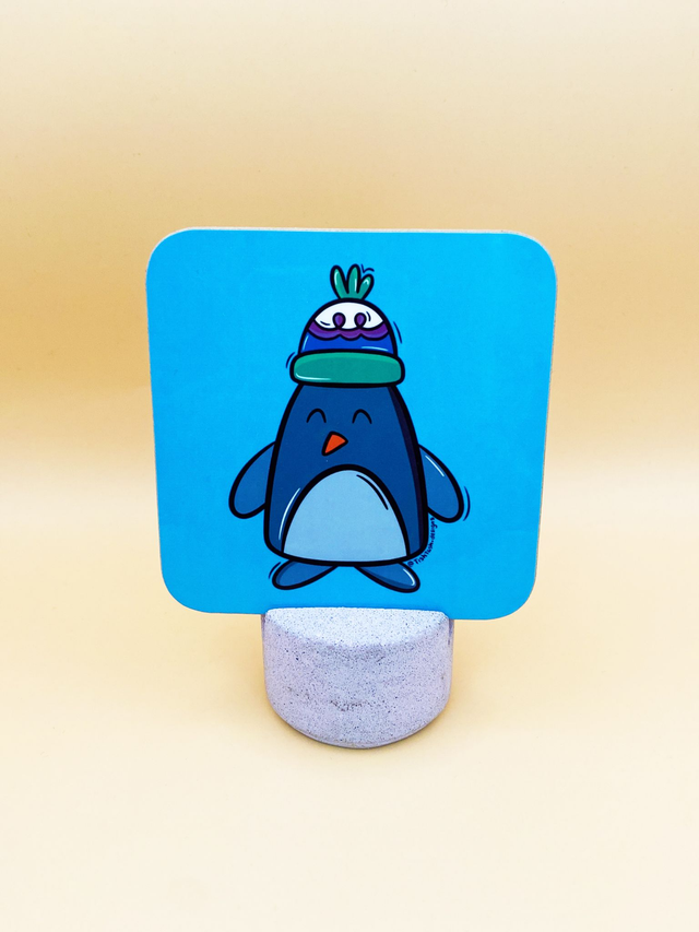 Penguin in woolly hat coaster